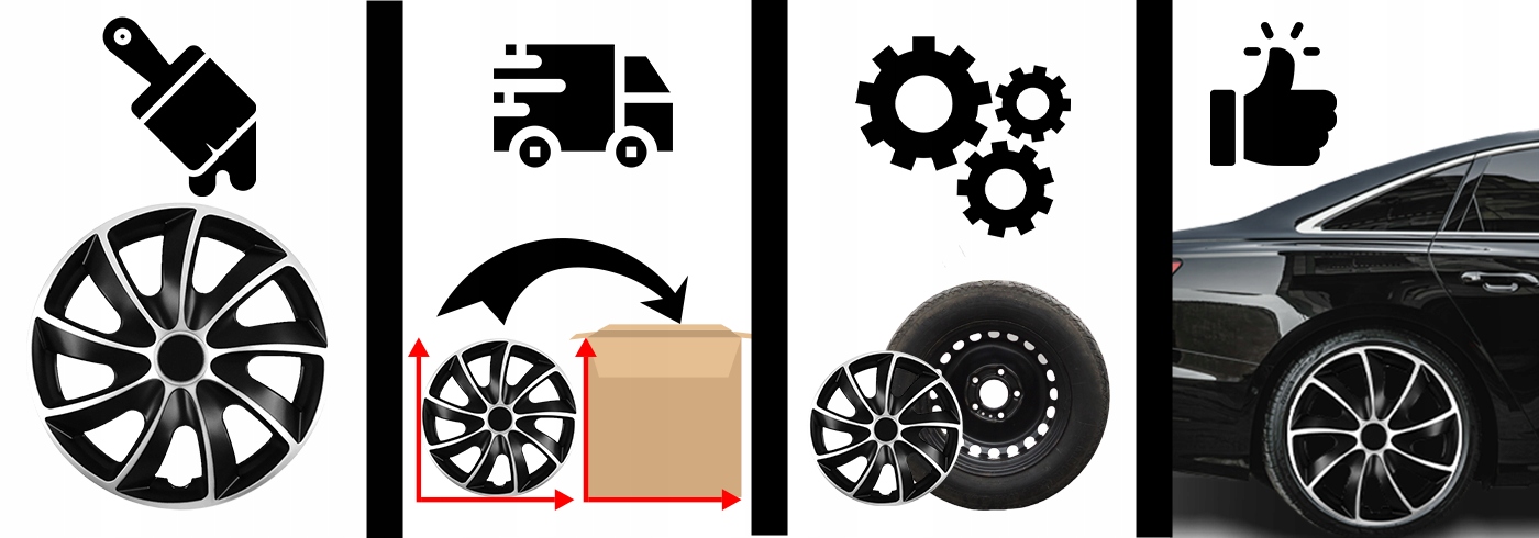 Мы упаковываем автомобильные колпаки в соответствующие картонные коробки, что снижает риск повреждения при транспортировке.