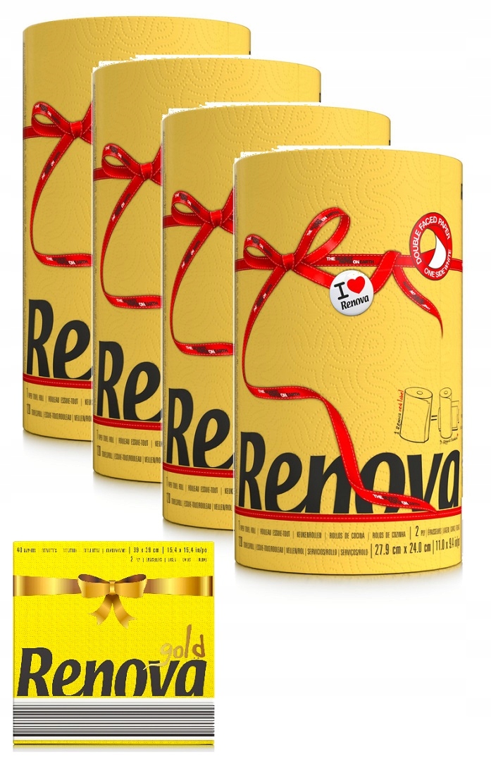 4 желтых кухонных бумажных полотенца Renova + бесплатно