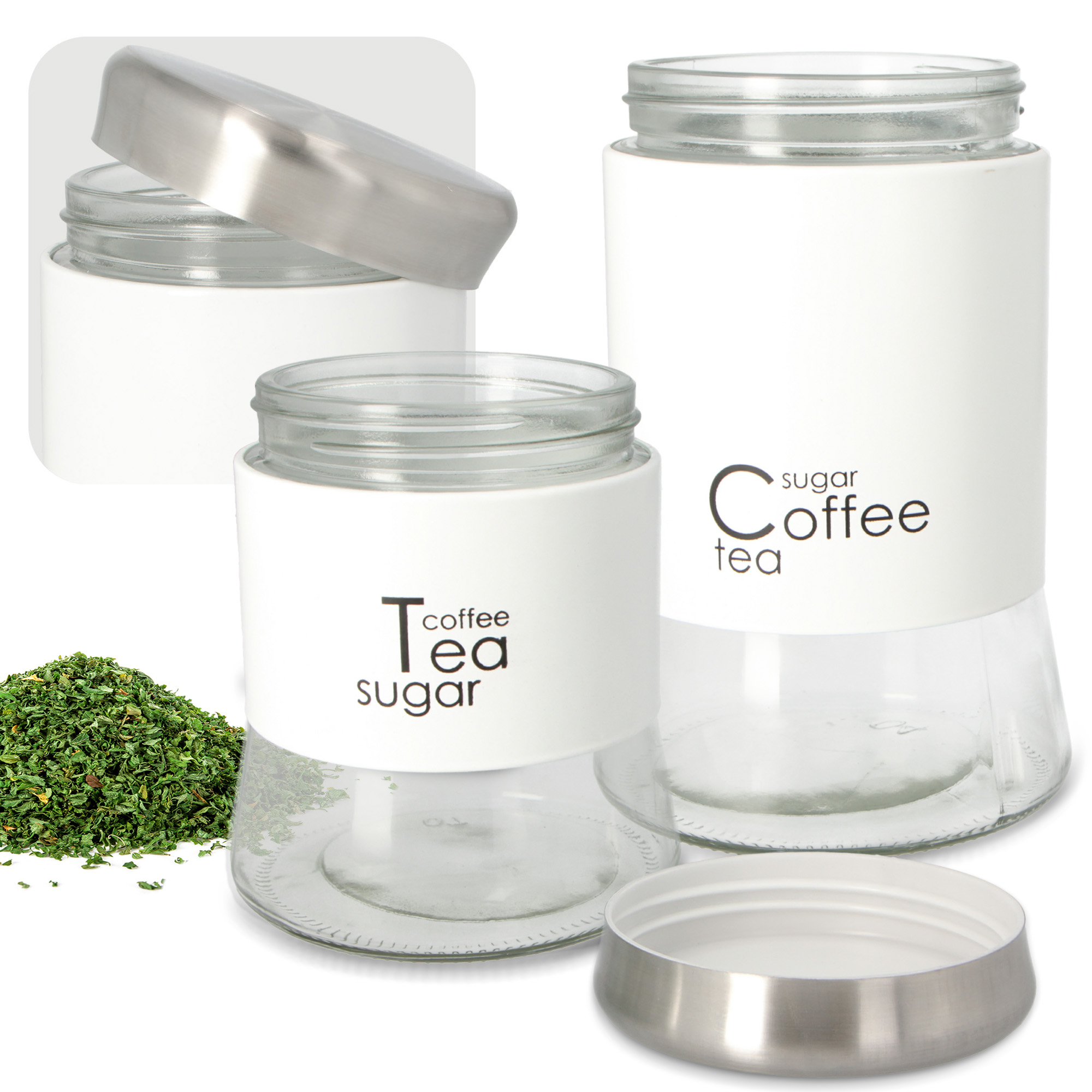 Набор стеклянной тары – это идеальный способ эстетично хранить различные продукты питания – кофе, чай, сахар или муку. Контейнеры идеально подходят для демонстрации на кухне в качестве своеобразного практичного украшения, создающего уютную атмосферу.