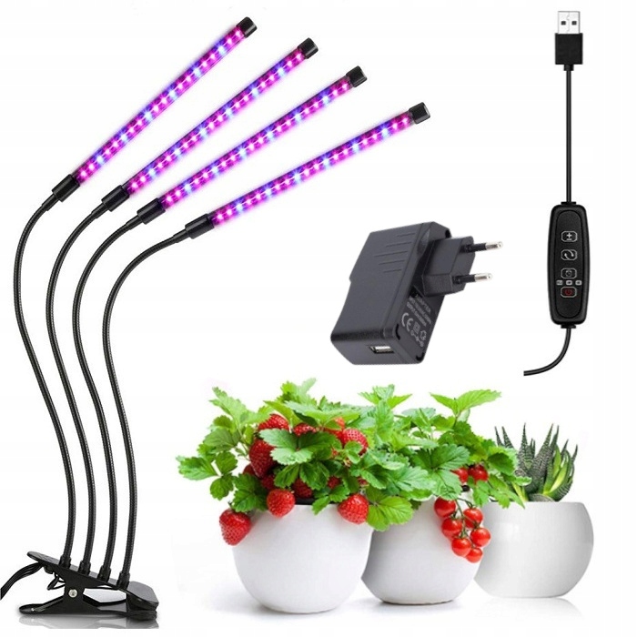 Светодиодная лампа с 4 гибкими головками поддерживает правильное развитие растений путем регулировки соответствующей длины волны света.