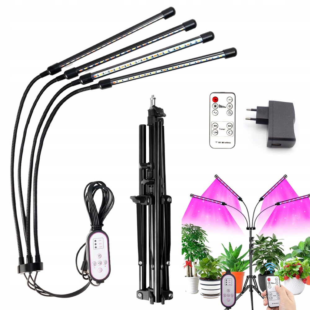 4x ЛАМПА ДЛЯ РОСТУ РОСЛИН 80 LED СТОЯЧИЙ ШТАТИВ З ТАЙМЕРОМ + ПУЛЬТ 40W
