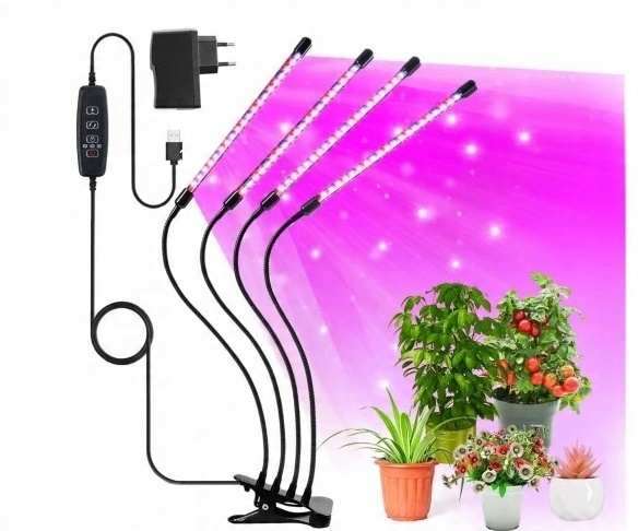 - Светодиодная лампа с четырьмя головами - заботится о правильном развитии растений и процессе фотосинтеза. и Power - Поддержите растения в соответствии с вашими собственными предпочтениями