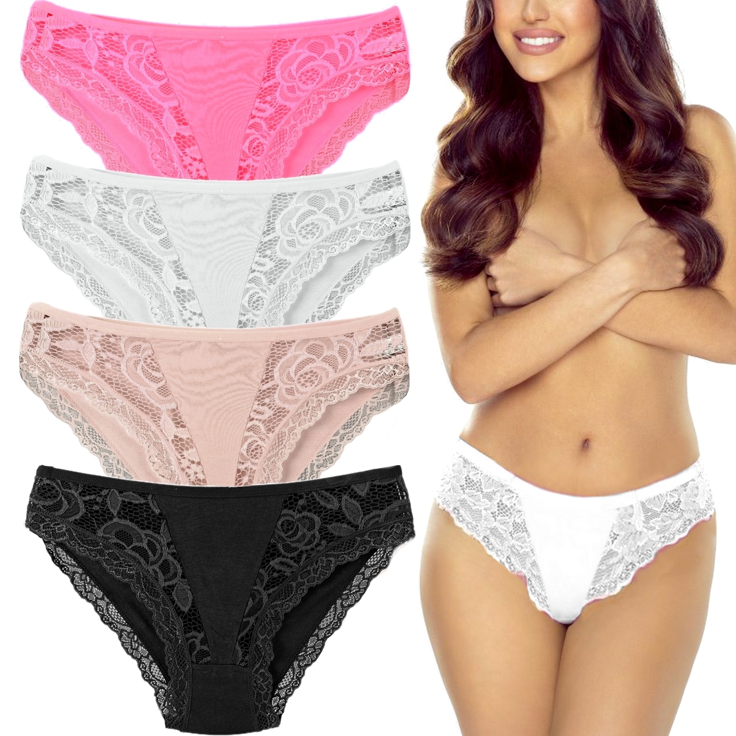 4 шт. - Трусики с привлекательным сексуальным кружевом спереди и вокруг штанин. Кружево с красивым цветочным мотивом.