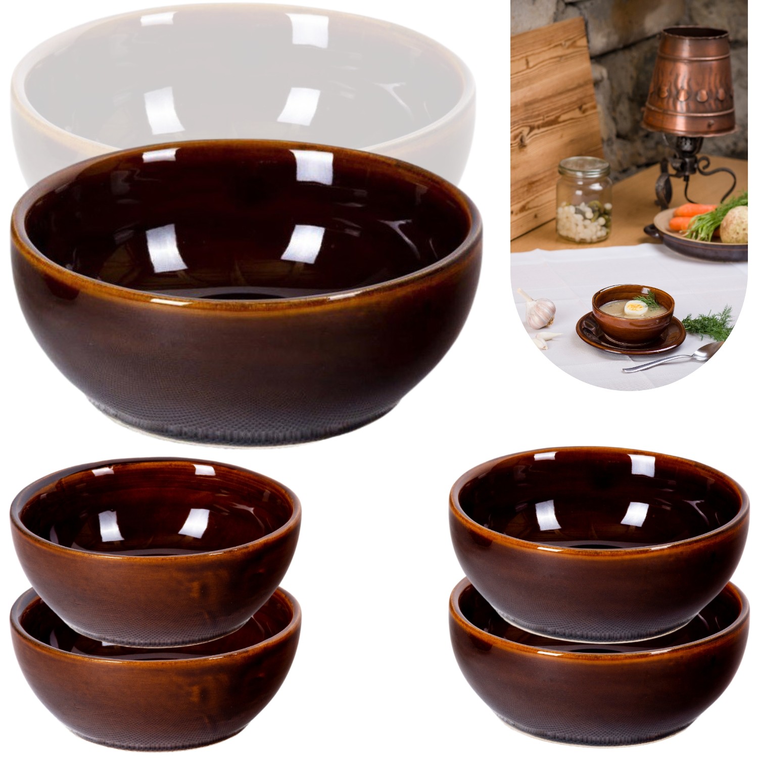 4X MISKA KAMIONKOWA DO ZUPY KOKILKA BULIONÓWKA FLACZARKA MISA NACZYNIE 0,5L