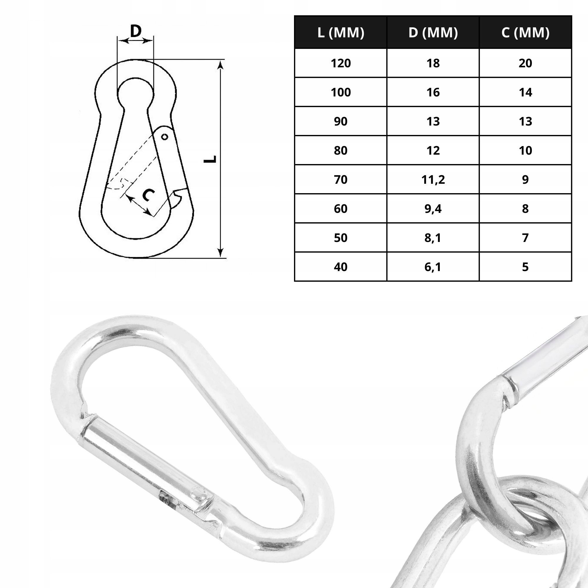 4x ЗАСТЕЖКА РУЧКИ-КАРАБИНА-КРЮКА 40 мм