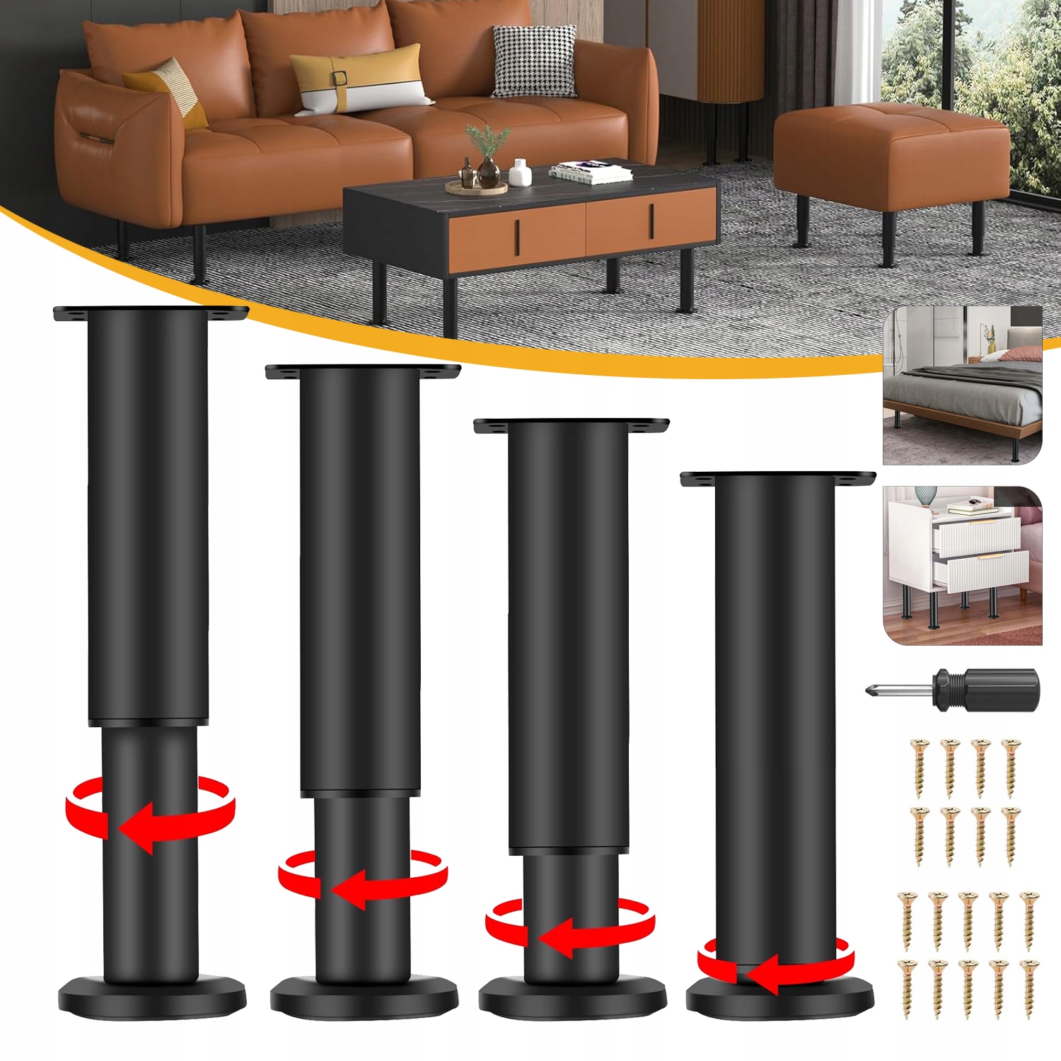 4X ОСНОВАНИЕ КРОВАТИ 18-30 СМ, РЕГУЛИРУЕМЫЕ МЕТАЛЛИЧЕСКИЕ МЕБЕЛЬНЫЕ НОЖКИ, НОЖКИ СТОЛА