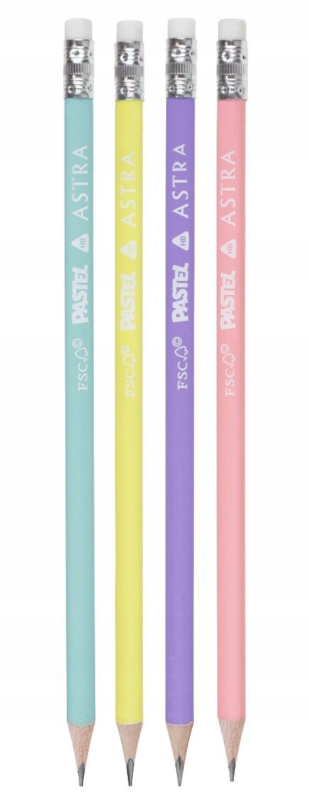 4x OŁÓWEK PASTELOWY Z GUMKĄ I MIARKĄ ASTRA