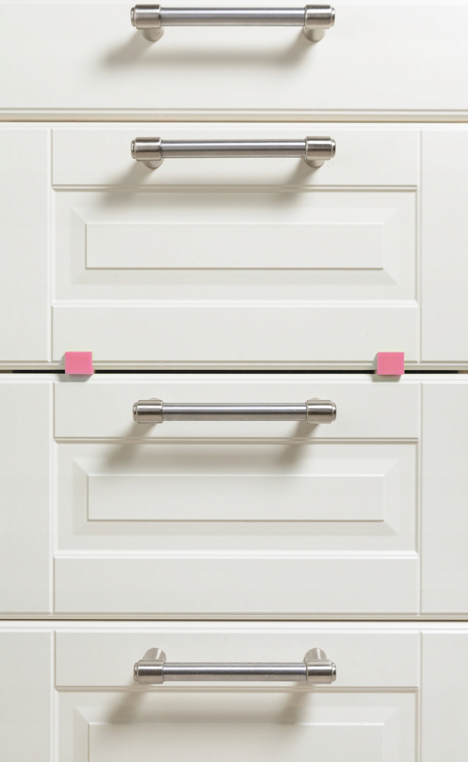 Розовые проставки с принтом, которые облегчают регулировку фасадов.