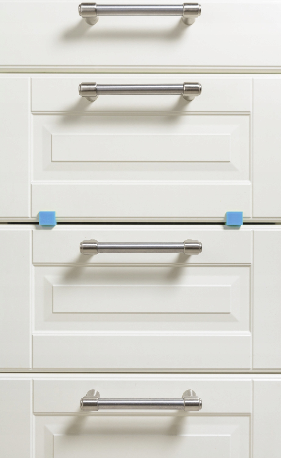 Проставки с принтом голубого цвета, которые облегчают регулировку фасадов.
