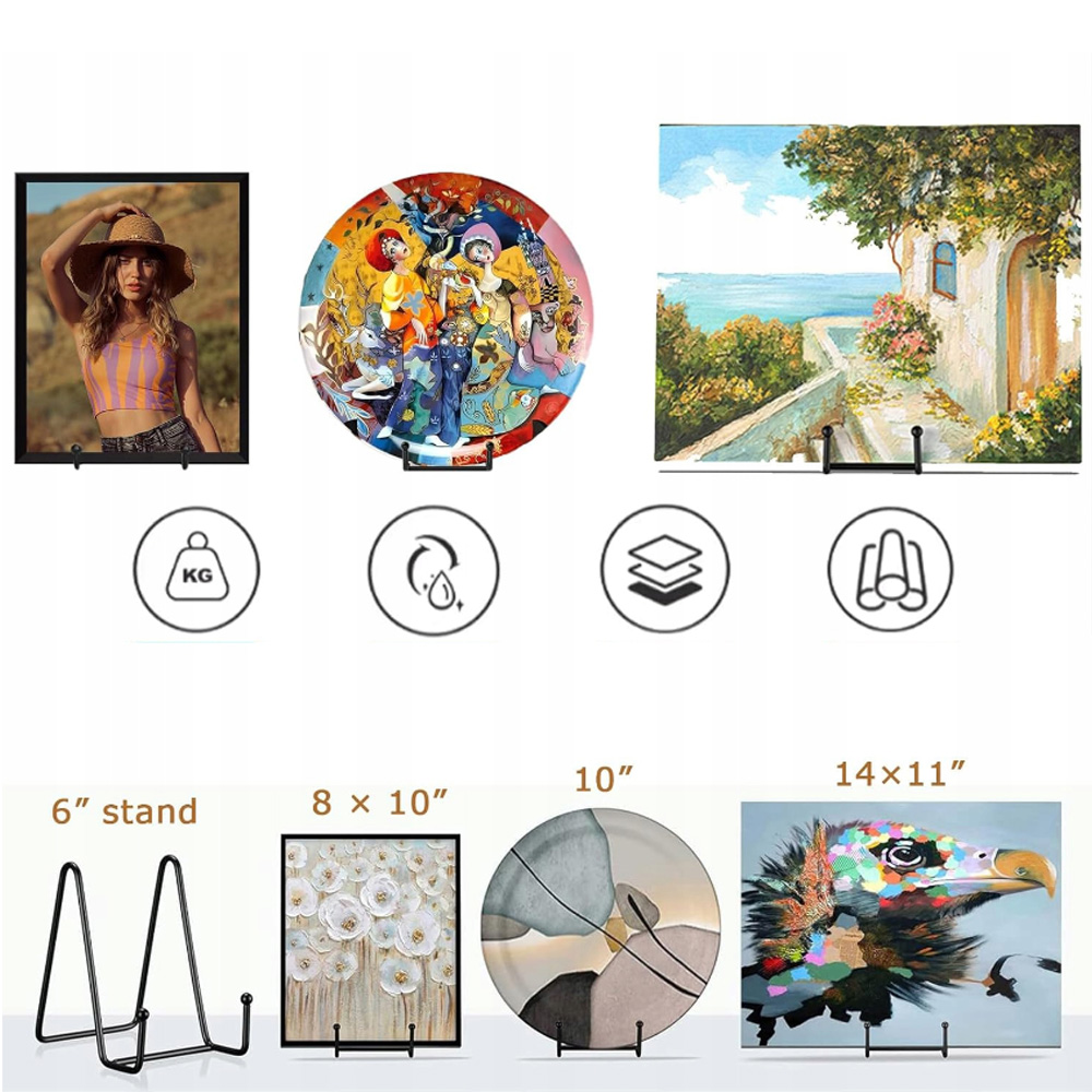 Изящный мольберт для тарелок/картин может добавить элегантности любому пространству, например, кухне, столовой, спальне, офису, банкетному или выставочному залу и коллекционному помещению. Идеально подходит для демонстрации произведений искусства, коллекций, посуды, рамок и т. д. Эти простые и небольшие мольберты в качестве декоративного украшения заставят вас всегда сосредоточиться на презентации, а не на железных подставках.