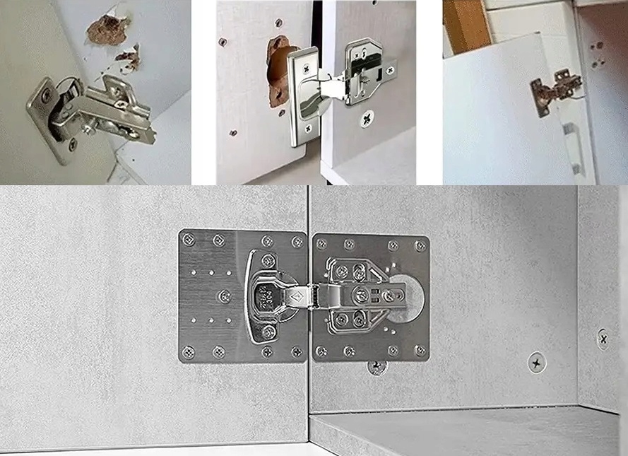 Поврежденные отверстия или сломанная петля – проблема многих предметов мебели. Ремонтная пластина – идеальное решение для ремонта мебели и шкафов. Ремкомплект сломанных петель состоит из: ремонтной пластины и 8 винтов, позволяющих отремонтировать петли