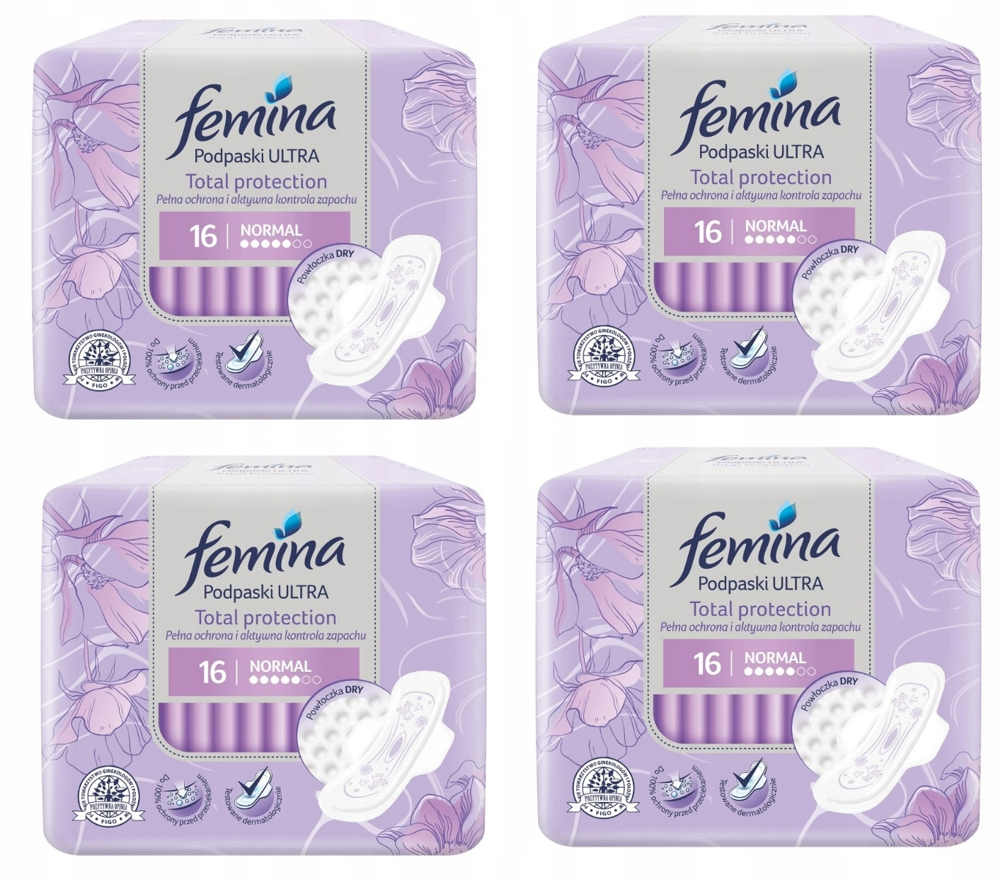 4x Podpaski Femina Normal Ultra Total Protection 16szt
