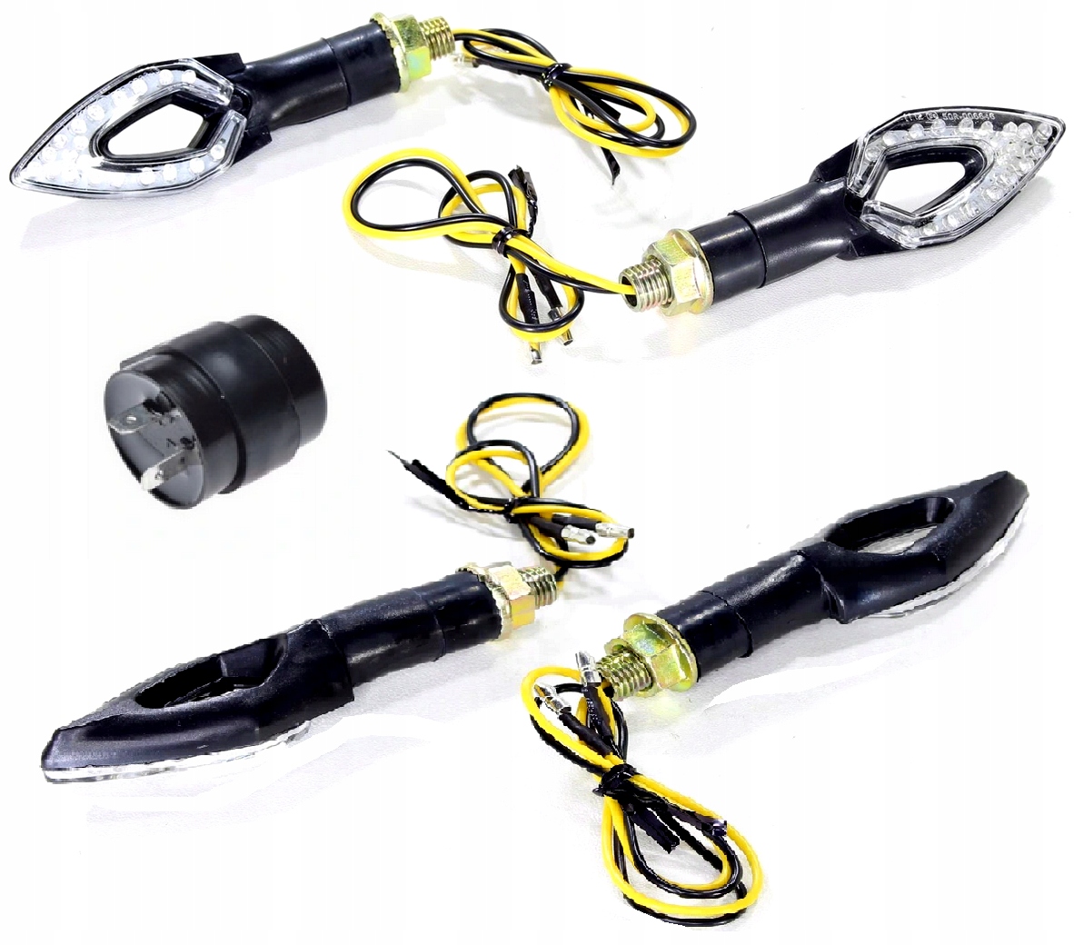 Индикаторы направления очень хорошо сделаны в технологии светодиодов в соответствии с заводским стандартом. Общая длина одного из них составляет около 10,5 см. Индикаторы направления связаны с двумя кабелями и вписываются в исходные места для крепления. Привлекательный внешний вид пустой стрелы в середине дает удивительный световой эффект. Набор включает в себя выделенную реле для таких индикаторов направления. Благодаря проверенному, высококачественному, они обеспечивают долгую и не проблема.