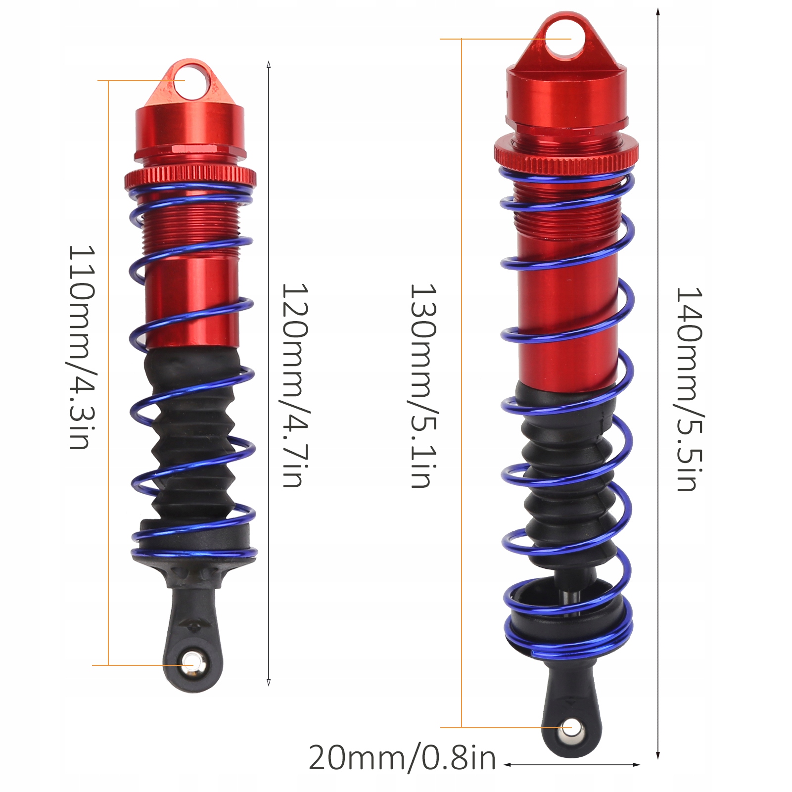 Комплект алюминиевых амортизаторов 120 мм спереди и 140 мм сзади для запасных частей 1/8 радиоуправляемого автомобиля