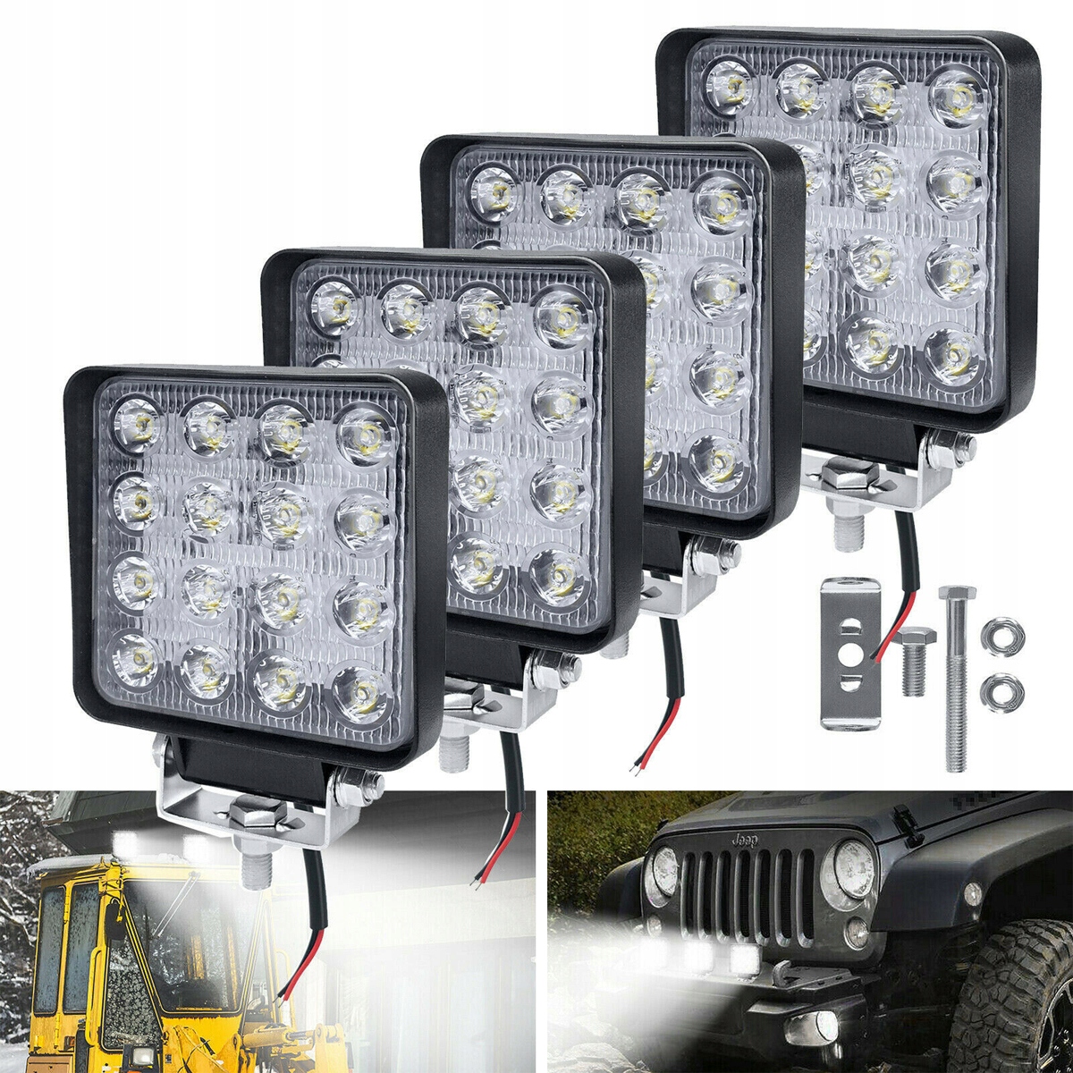 КОМПЛЕКТ 4x РАБОЧИХ ЛАМП 16 ГАЛОГЕННЫХ СВЕТОДИОДОВ 48ВТ ДЛЯ ТРАКТОРА ЭВАКУАТОРА