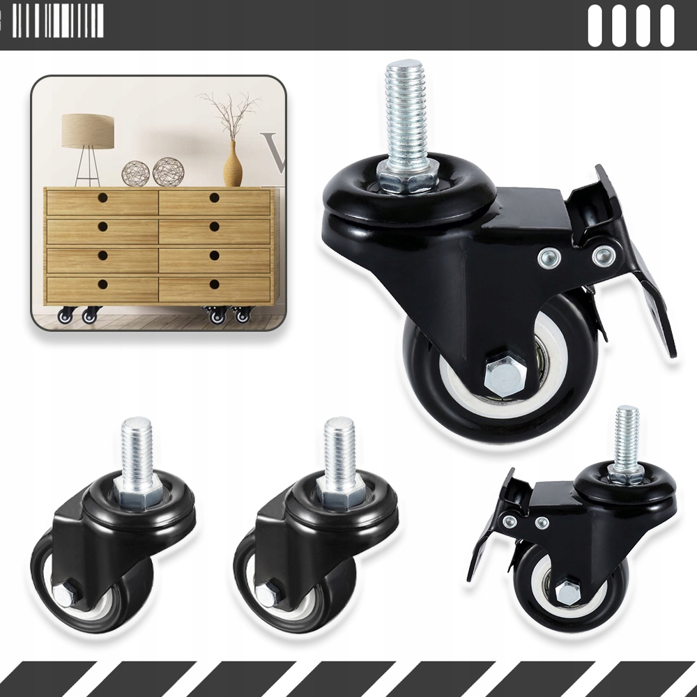 4 РОЛИКОВЫХ ПОВОРОТНЫХ КОЛЕСА МЕБЕЛЬНЫЕ КОЛЕСА С РЕЗИНОВЫМИ ПОДШИПНИКАМИ, ХВОСТОВИК 40 ММ M8X25