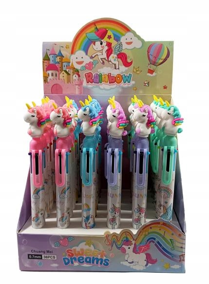 4x ШАРИКОВАЯ РУЧКА 6 – РАЗНОЦВЕТНАЯ ДЕТСКАЯ МНОГОЦВЕТНАЯ ЕДИНОРОГ 6в1