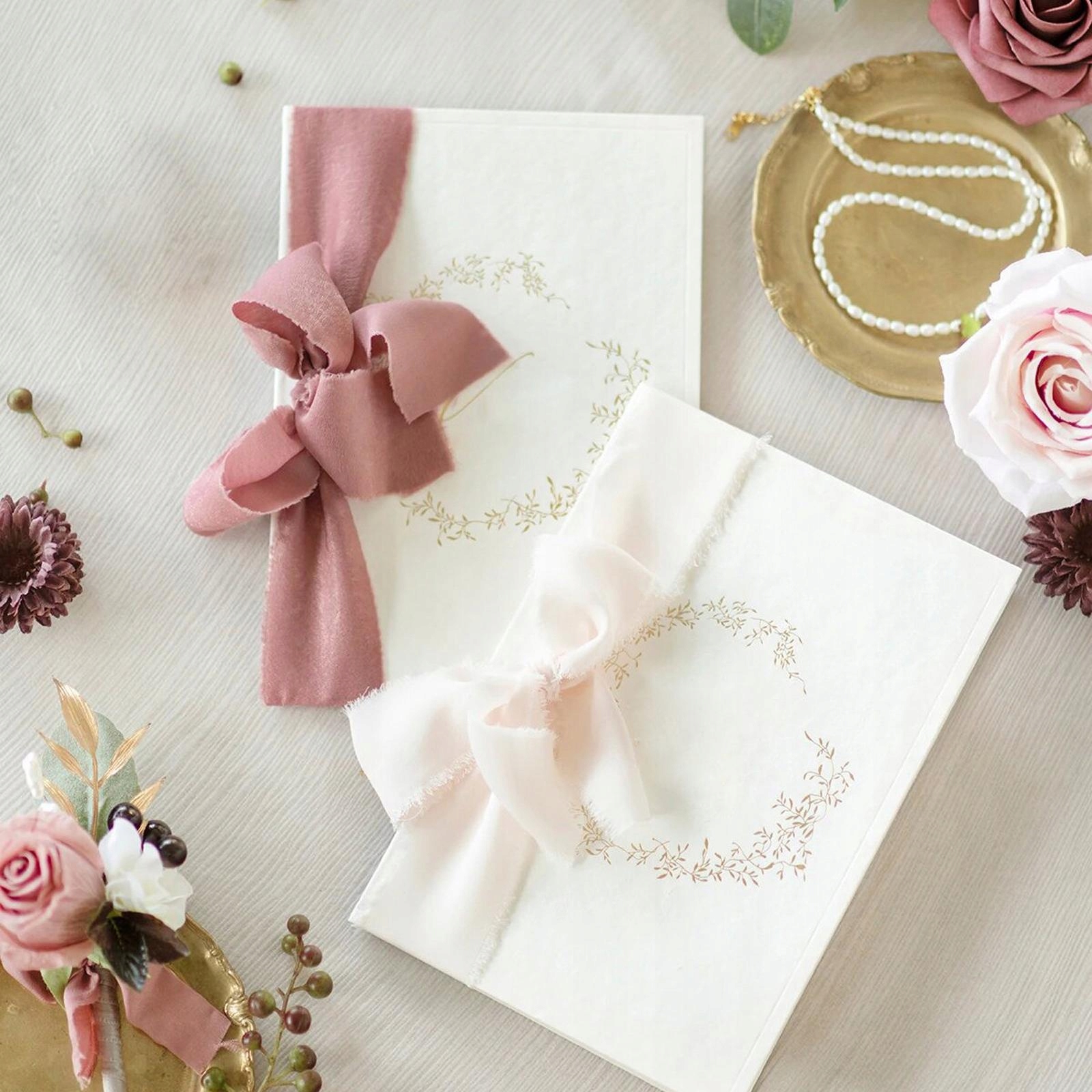 4 штуки шифоновой шелковой ленты длиной 5 ярдов ручной работы для украшения подарочной упаковки розового цвета