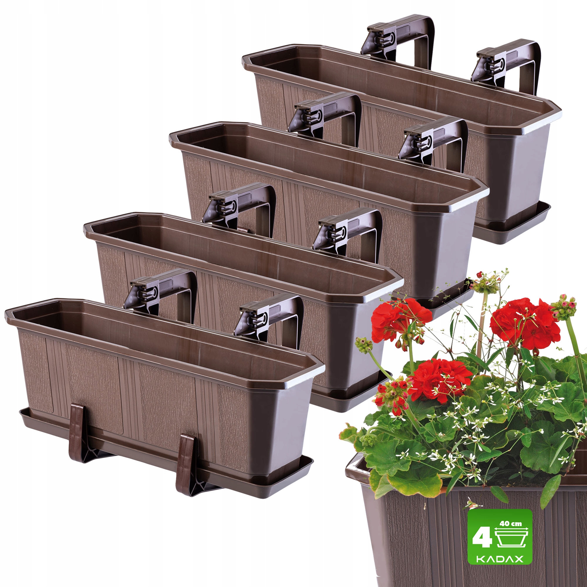 4x SKRZYNKA BALKONOWA 40cm UCHWYTY BRĄZOWA