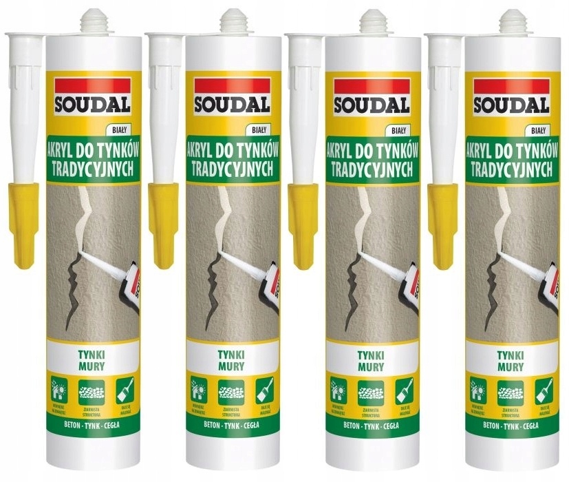 4x SOUDAL АКРИЛОВА ГЕРМЕТИКА ДЛЯ БІЛОЇ ФАСАДНОЇ ШТУКАТУРКИ