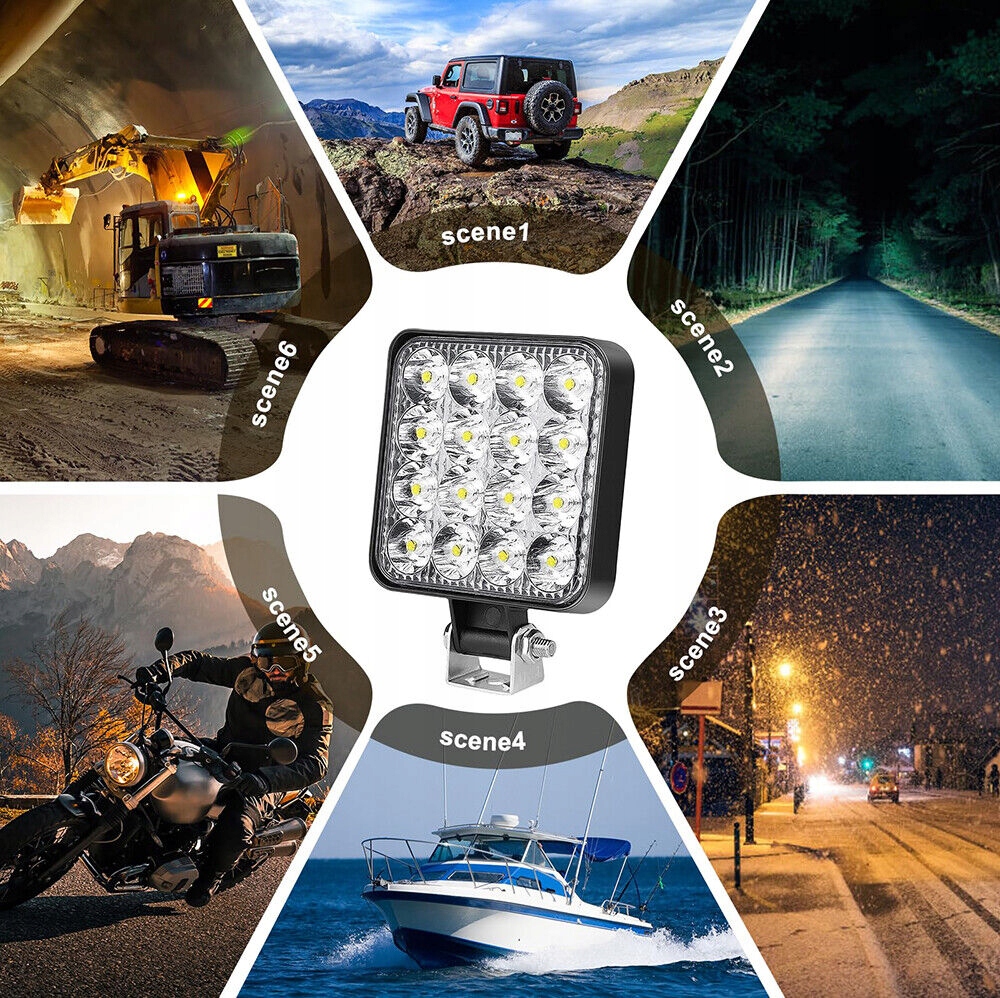 4X Szperacz LEDOWY Lampa robocza LED 48W 12-24V HALOGEN 16 LED