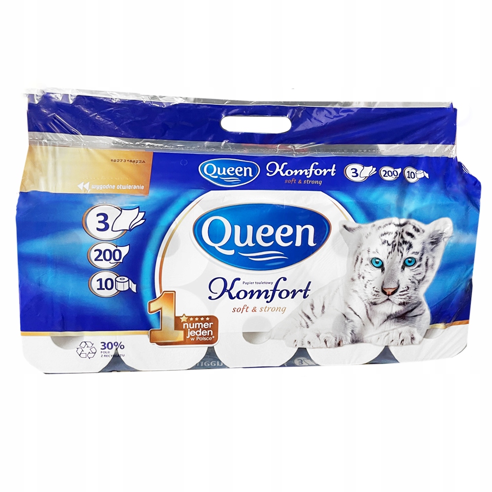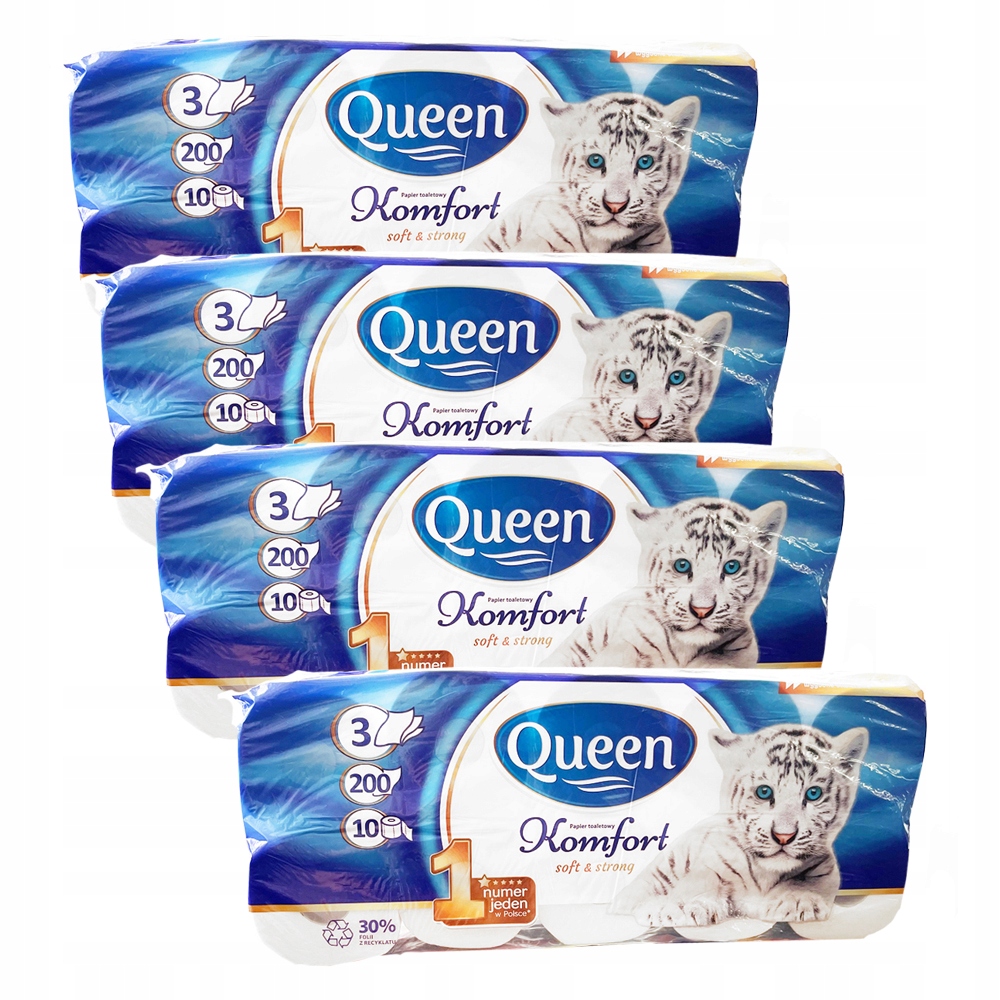 4x ТУАЛЕТНАЯ БУМАГА QUEEN COMFORT 10 РОЛИКОВ 3 СЛОЯ = 40 РОЛИКОВ