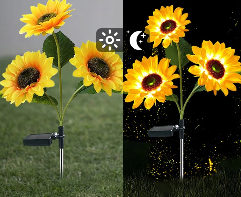 4x ВІДКРИТИЙ САДОВИЙ СВІТИЛЬНИК СОНЯЧНИЙ СВІТЛОДІОДНИЙ ЛАМПА з квіткою СОНЯХИ