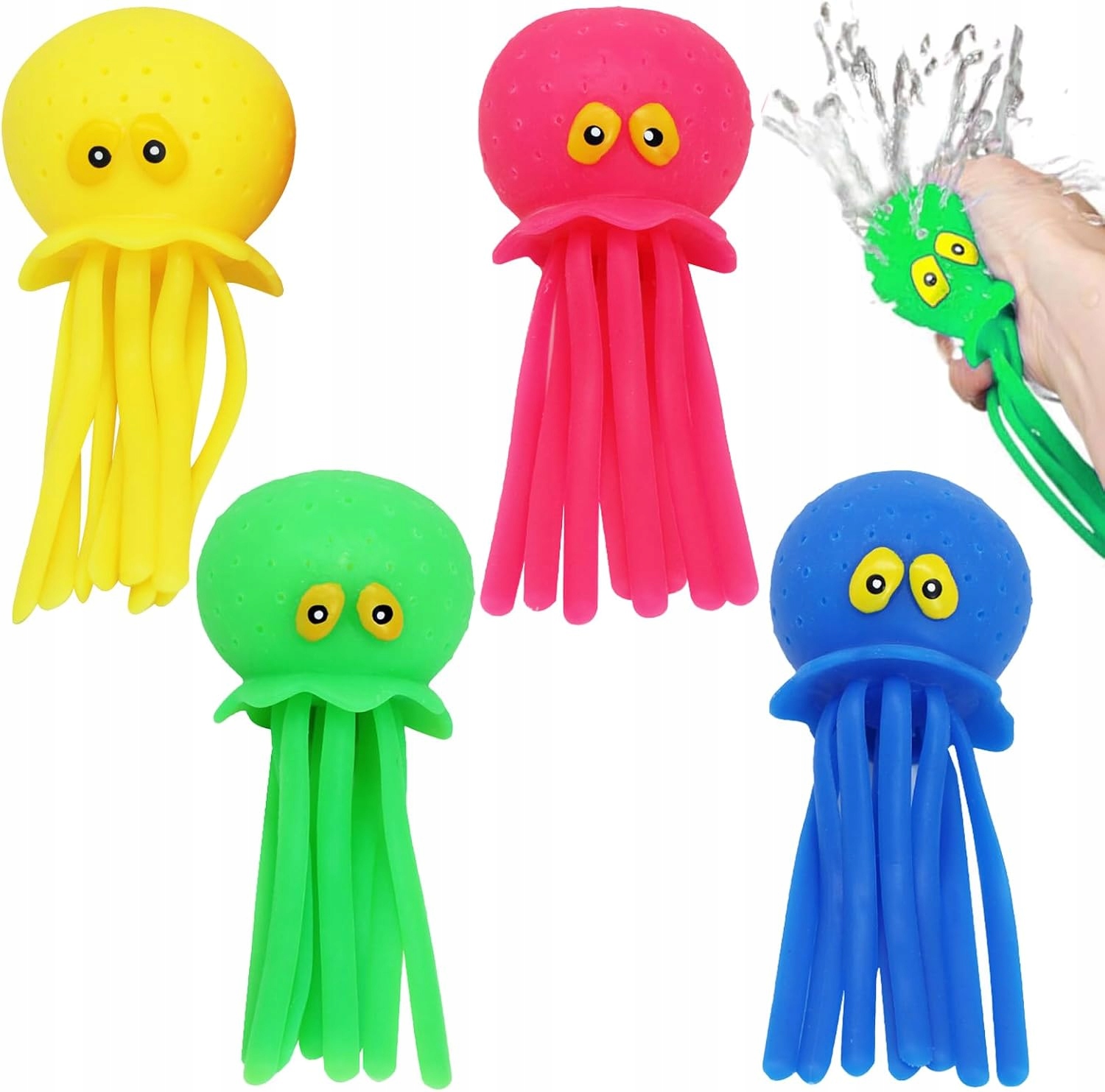 Набор игрушек-осьминогов из 4 предметов для детей, играющих в воде | Интерактивный распылитель воды, цветной материал TPR.