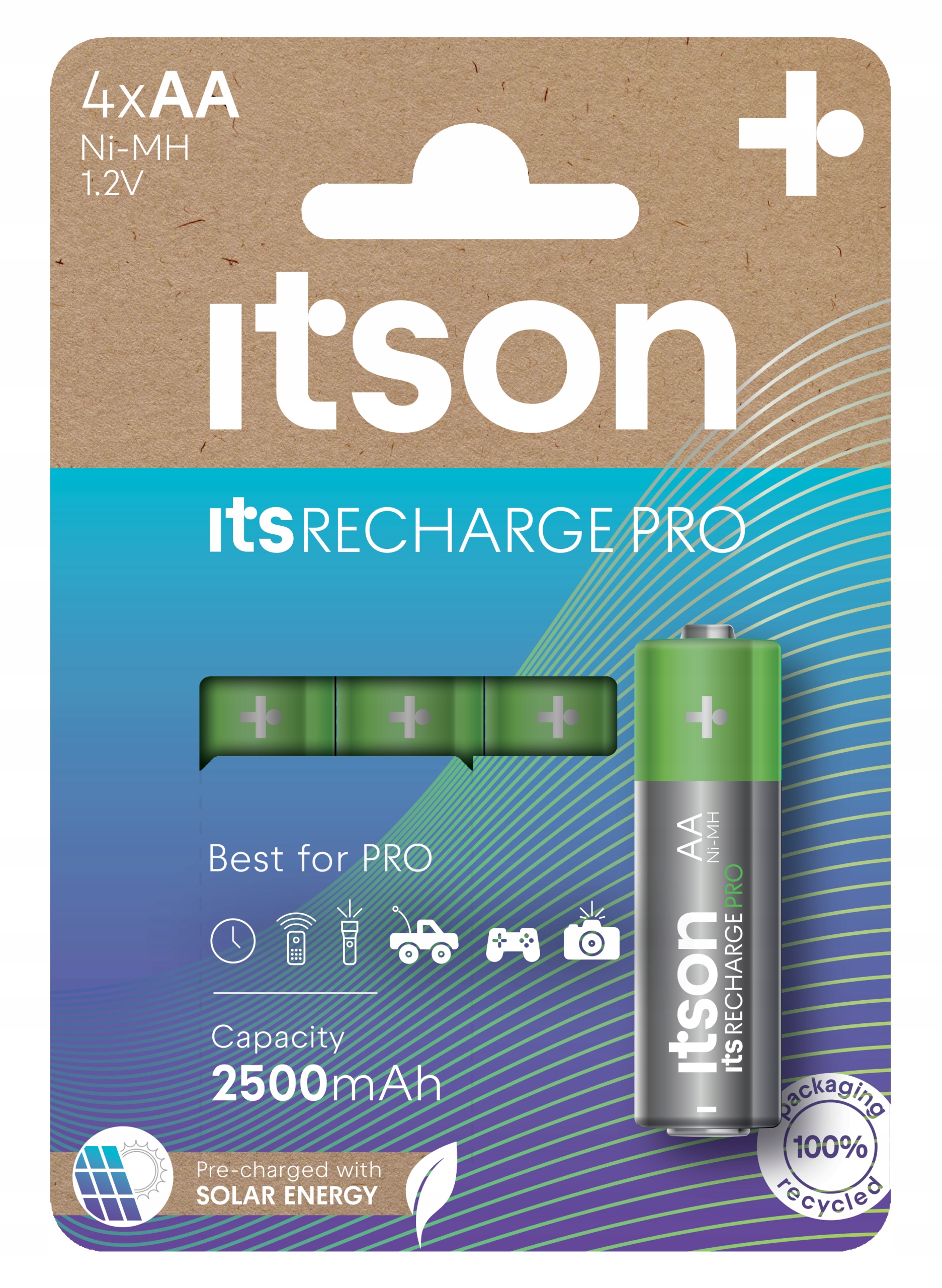 Никель-металлогидридные аккумуляторы itRECHARGE PRO поставляются в упаковке, на 95 % изготовленной из переработанных материалов, которые на 100 % подлежат вторичной переработке