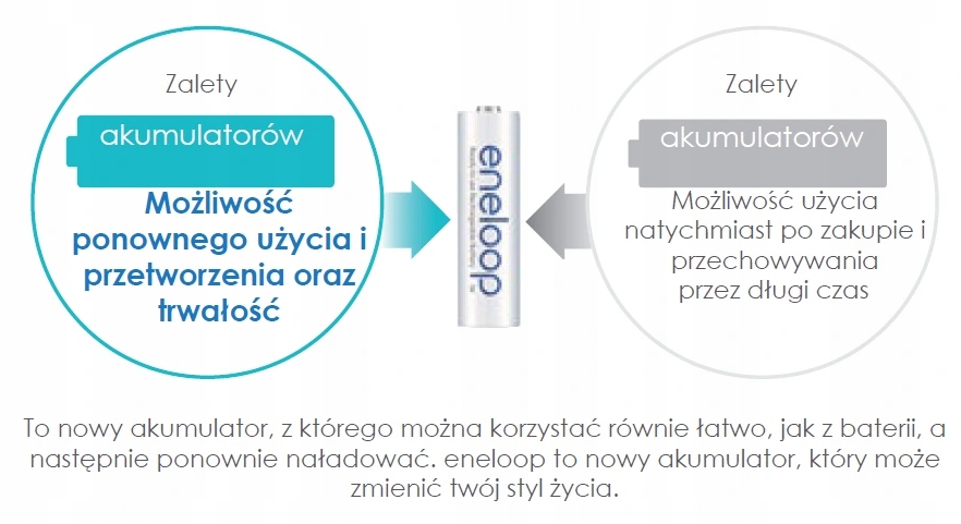 <ул>ENELOOP — это первая аккумуляторная батарея, которая заряжена и готова к использованию с момента покупки.