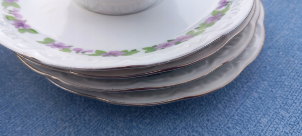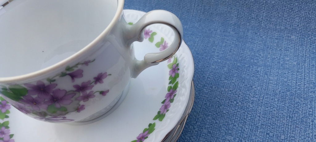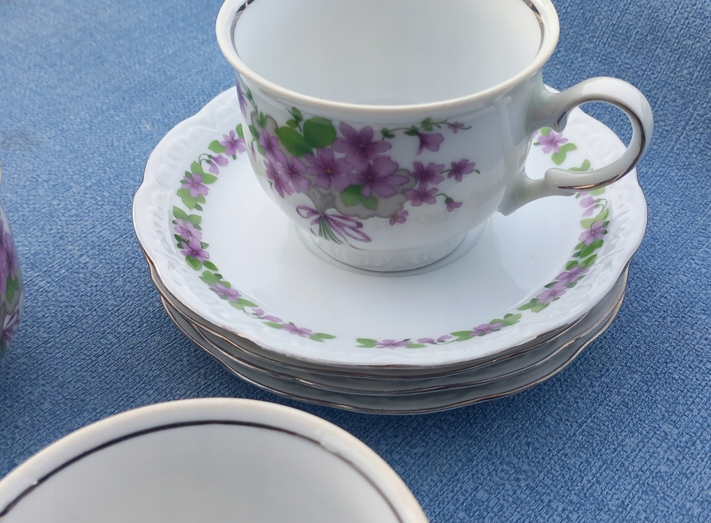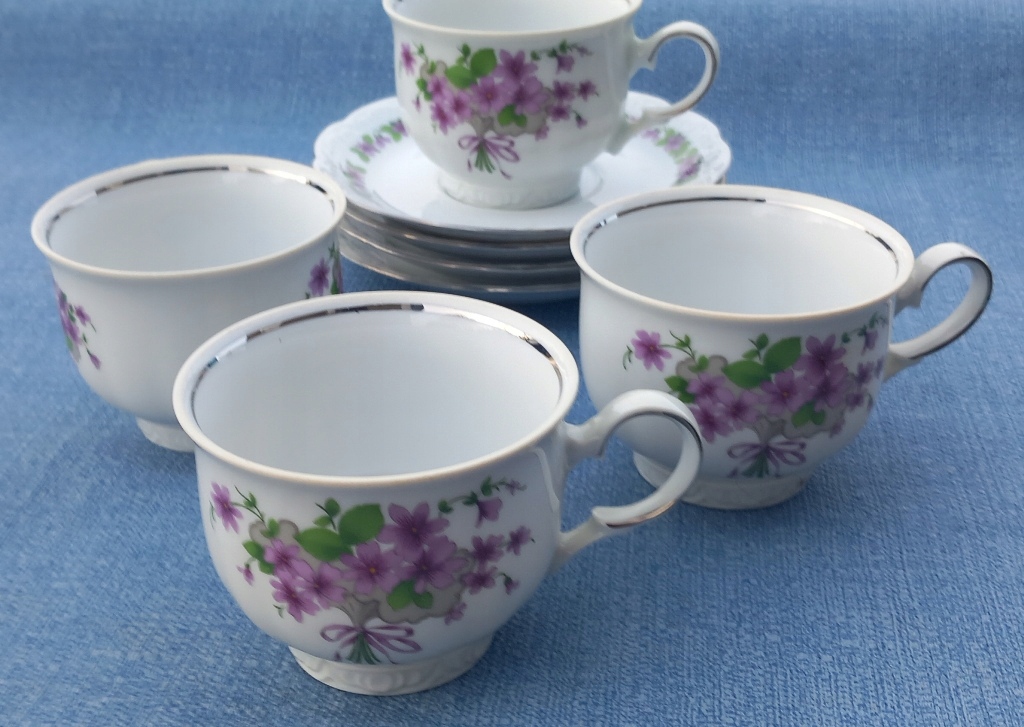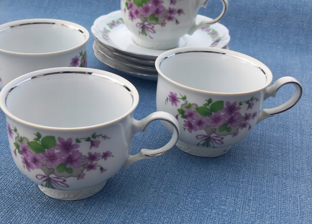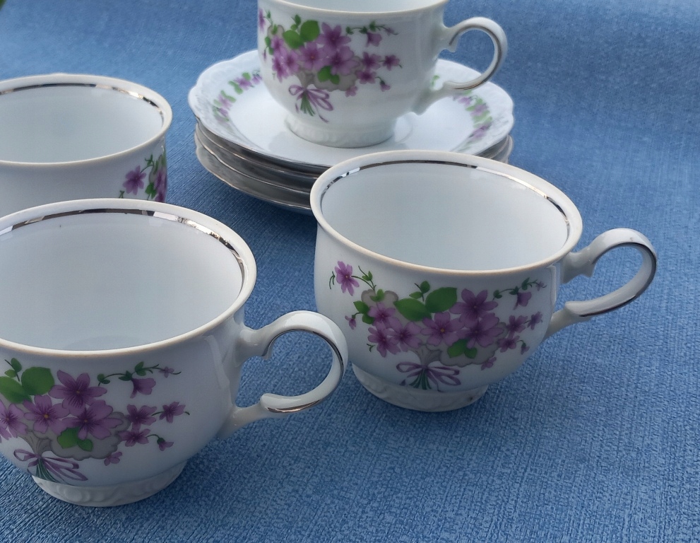 4x zestaw filiżanka + podst mitterteich fiołki srebrny