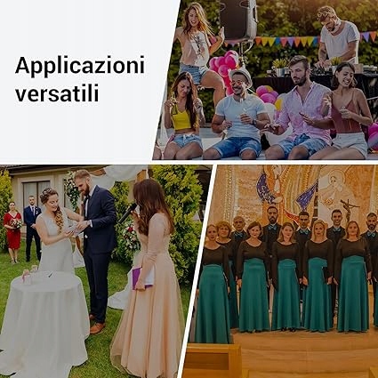 Большой беспроводной диапазон связи: наслаждайтесь свободой беспроводной связи благодаря нашему диапазону 60 метров, что обеспечивает максимальную свободу во время производительности. Идеально подходит для караоке, церковных собраний, свадеб, встреч и конференций. Неограниченные и непрерывные презентации, как внутри, так и снаружи.