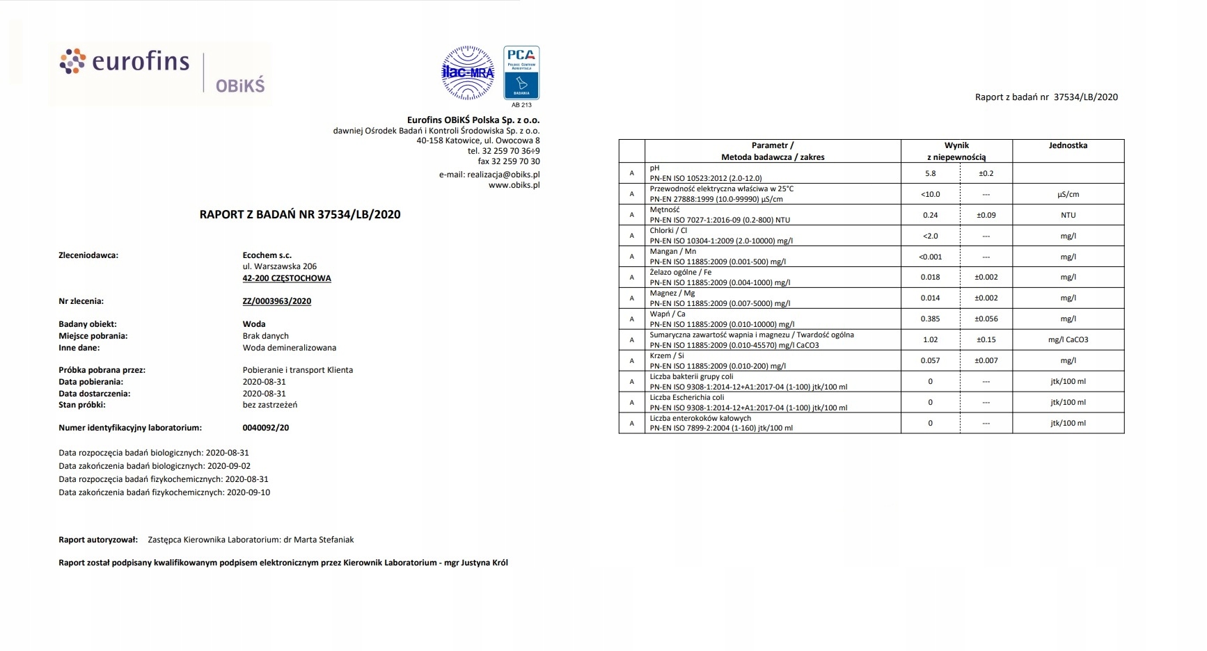 4X5L УЛЬТРАЧИСТАЯ деминерализованная вода испытания