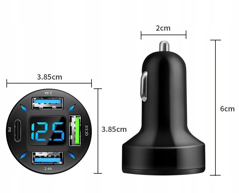 Быстрое автомобильное зарядное устройство имеет четыре зарядных порта. Один порт Super QC3.1 предназначен для сверхбыстрой зарядки и три порта 3,1 А для быстрой зарядки
