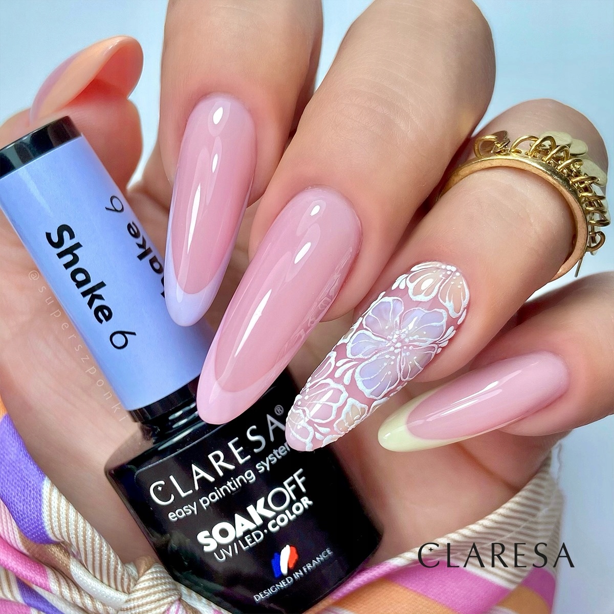 Нанесите тонкий слой цветного гибридного лака на предварительно затвердевшую гибридную основу Claresa и просушите его в УФ/LED-лампе. Для достижения удовлетворительного эффекта можно повторить операцию. Закрепите укладку, нанеся и закрепив TOP Claresa.