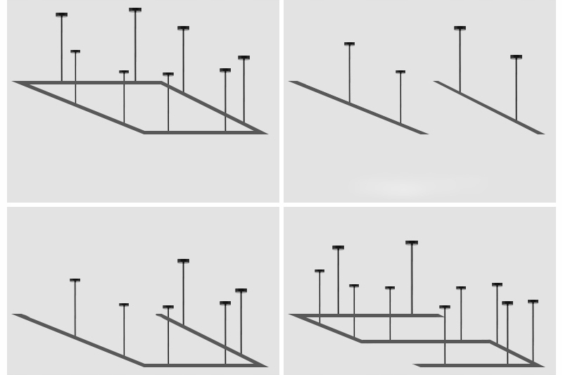 Лампа установлен как горизонтально, так и вертикально. Вы можете легко направлять свет в разные места, потому что каждый отражатель может быть отрегулирован индивидуально.