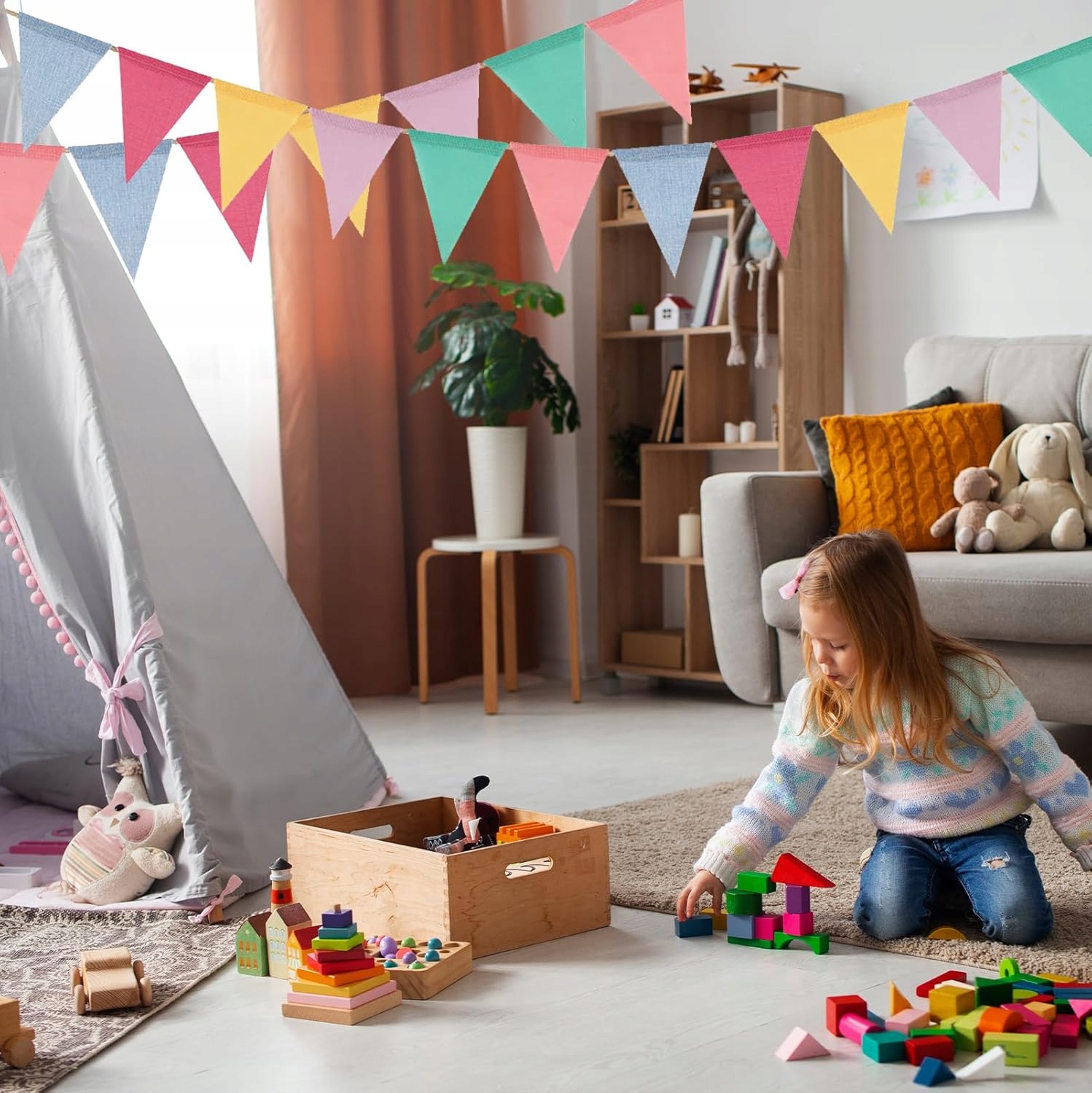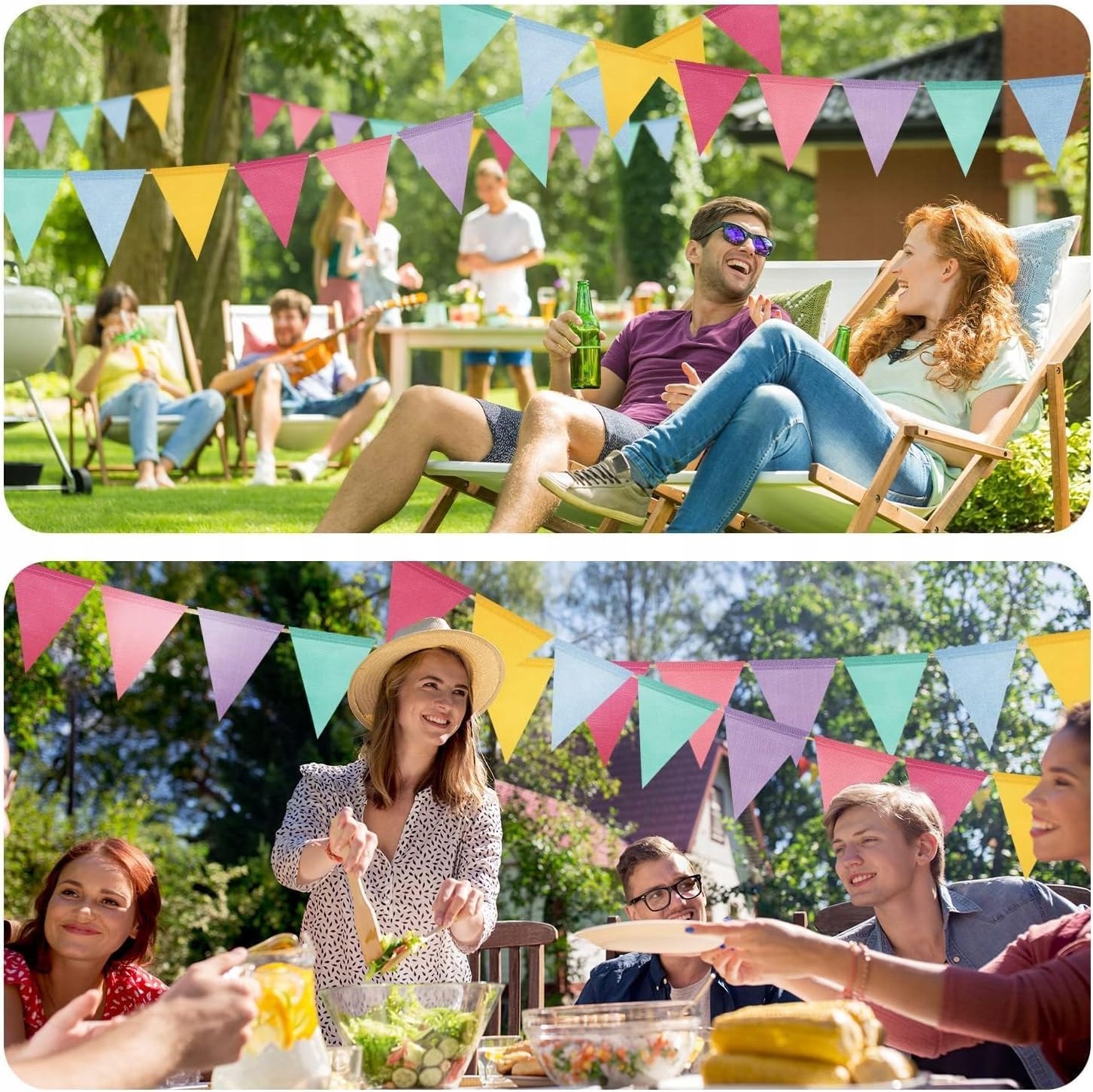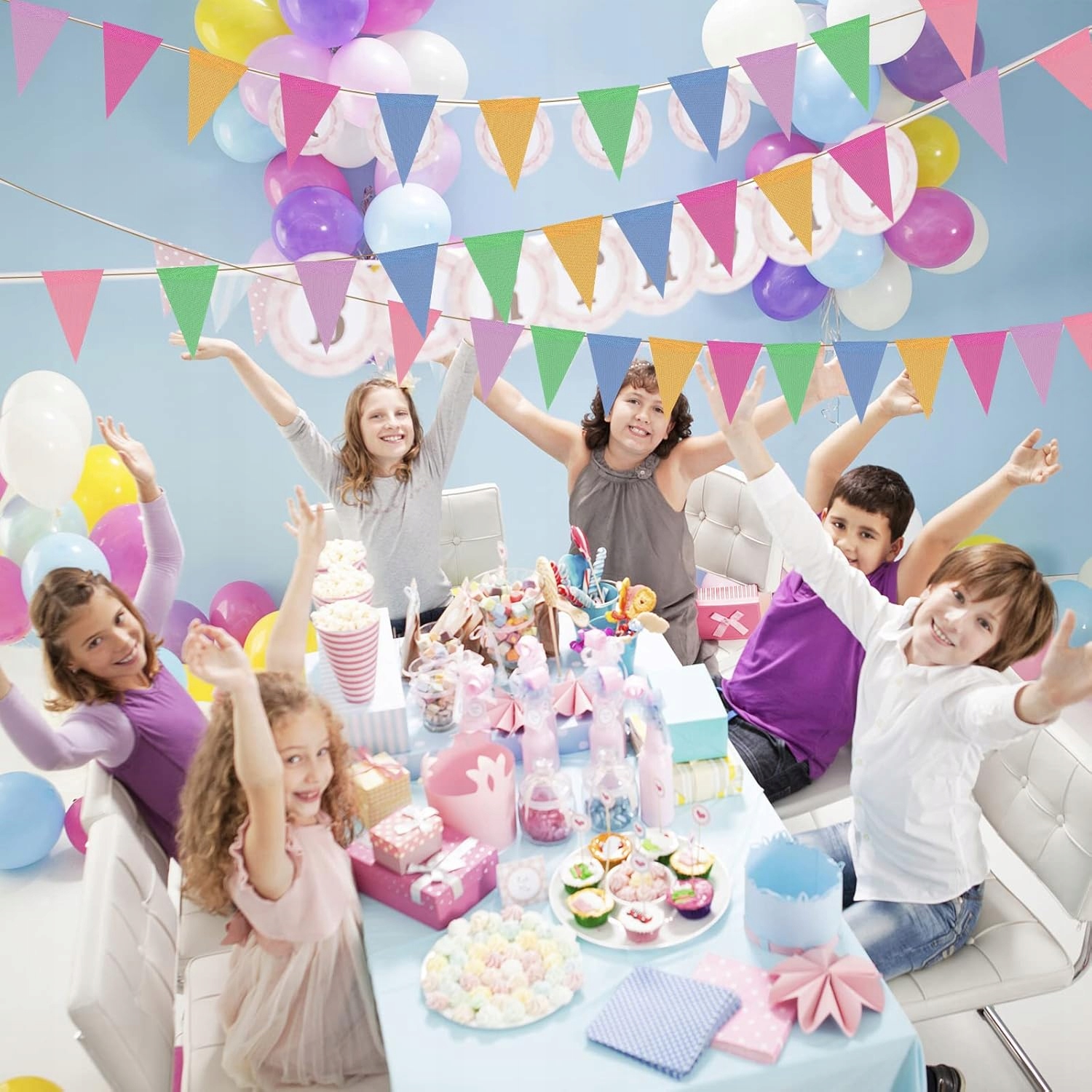 � 【Красочный дизайн】 6 Яркие цвета флагов: синий, желтый, розовый, розовый, фиолетовый и зеленый. Многоцветные баннеры с вымпелами могут создать радостную атмосферу на вашей вечеринке.