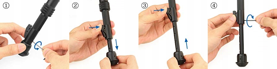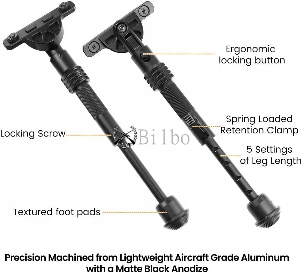 Универсальная двунаправленная сошка может быть зафиксирована в любом из пяти положений, что позволяет складывать ее вперед или назад, а ее длина может быть разной в зависимости от вашего огнестрельного оружия и окружающей обстановки. Оснащен текстурированными подушечками для ног, позволяющими удерживаться на различных поверхностях для съемки.