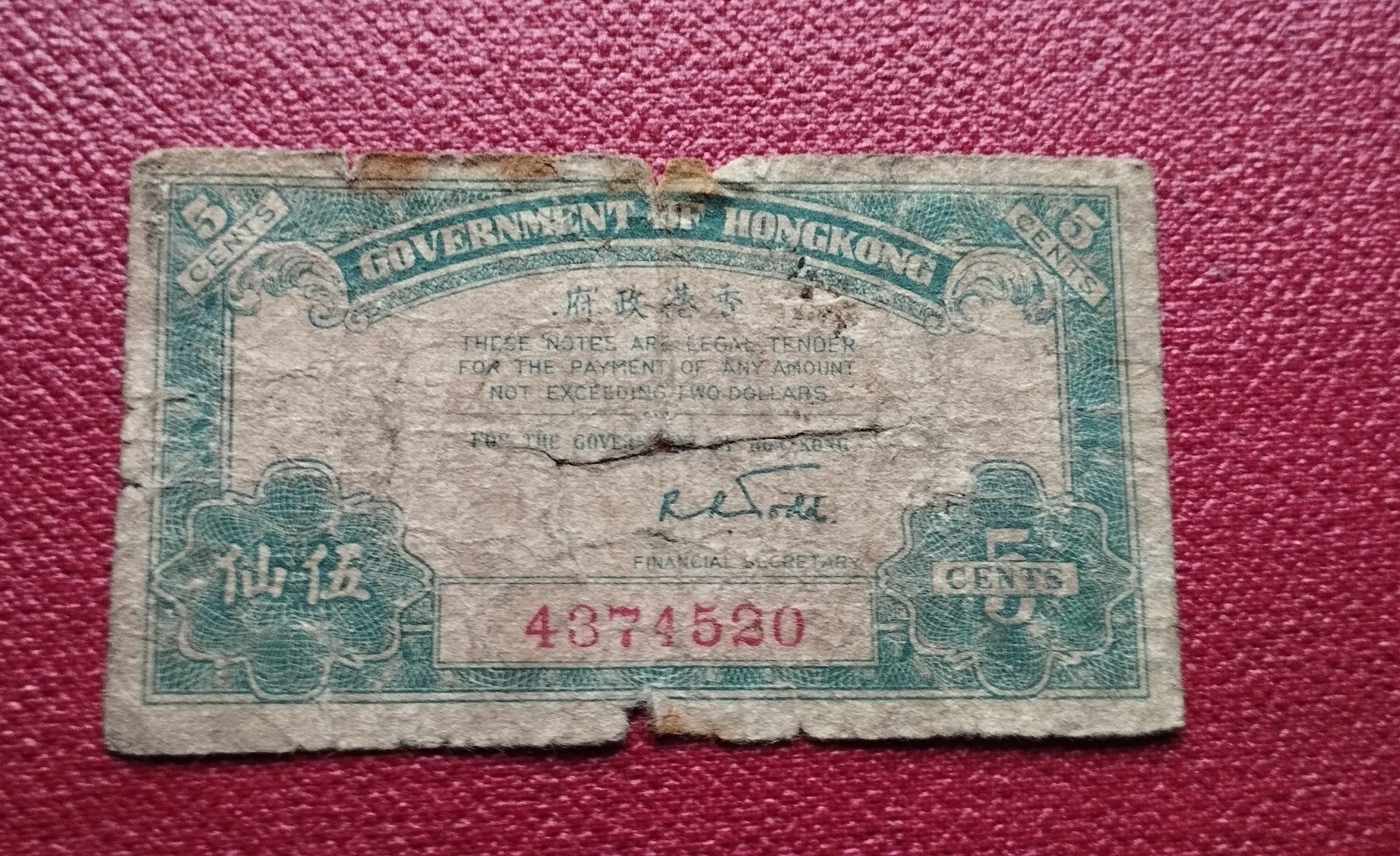 5 ЦЕНТОВ ГОНКОНГ 1941 ГОДА