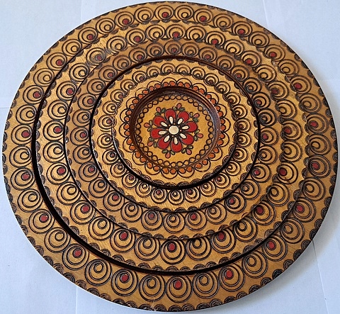- 5 ДЕРЕВЯННЫХ НАРОДНЫХ ТАРЕЛОК - РУЧНАЯ РАБОТА - фото