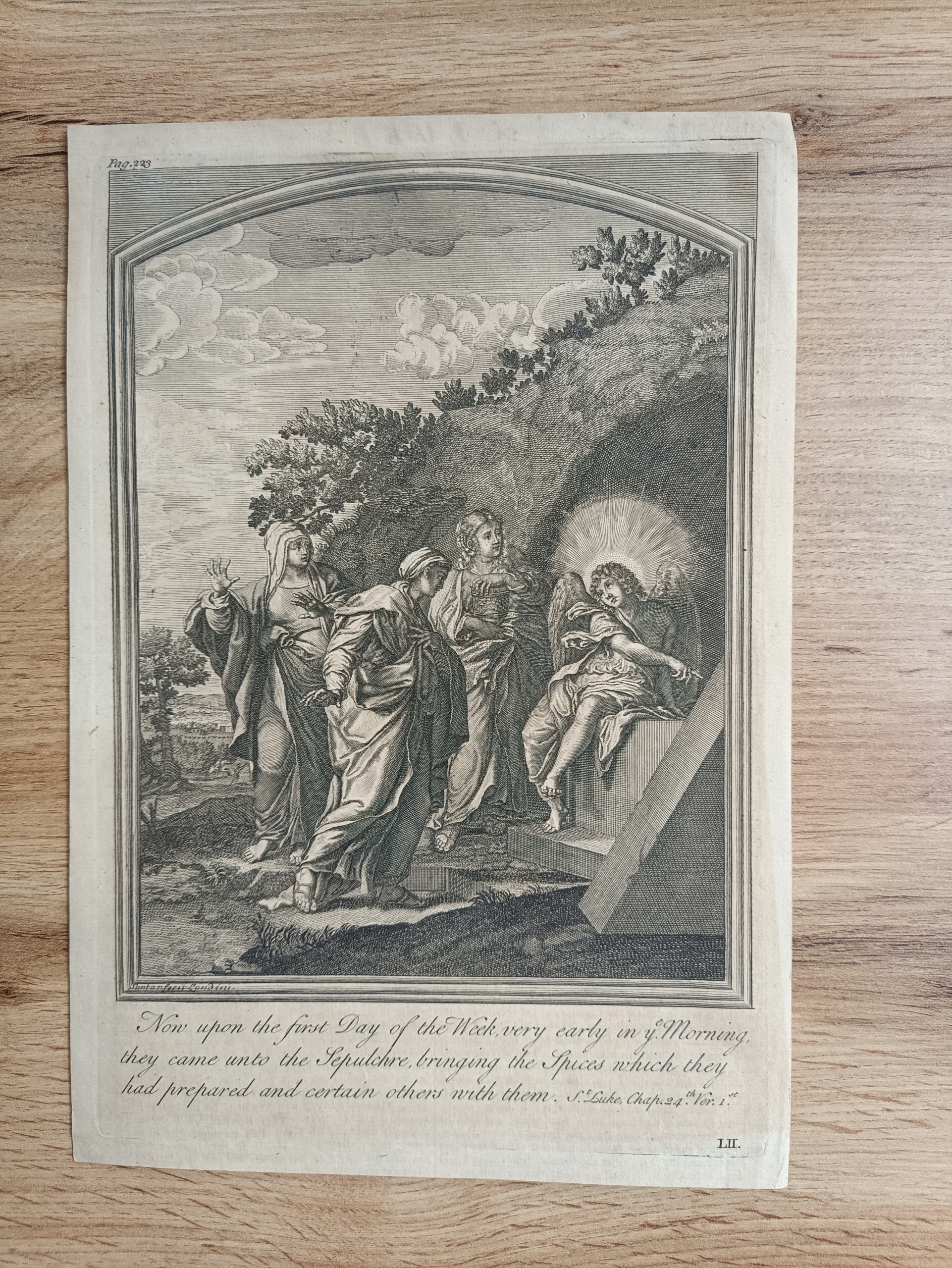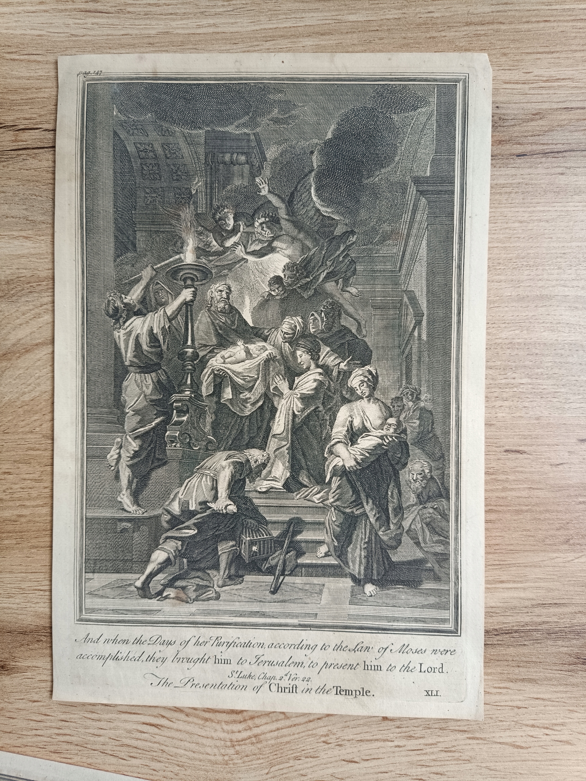 5 dużych miedziorytów z XVIII wieku Biblia Clark & Pine