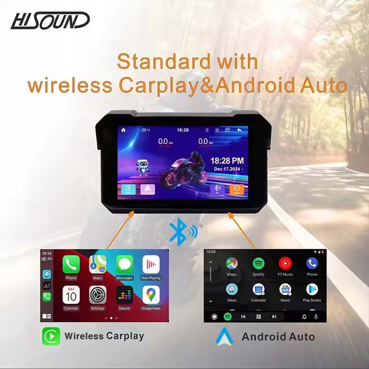 Это 5-дюймовая интеллектуальная навигационная система для мотоцикла, объединяющая запись видео высокой четкости, беспроводную связь CarPlay, Android Auto, портативный экран, контроль давления в шинах (TPMS) и другие функции в одном. В нем используются высококачественные материалы и передовые технологии, обеспечивающие полную безопасность и комфорт во время езды на мотоцикле, что делает его идеальным выбором для любителей велосипедного спорта.