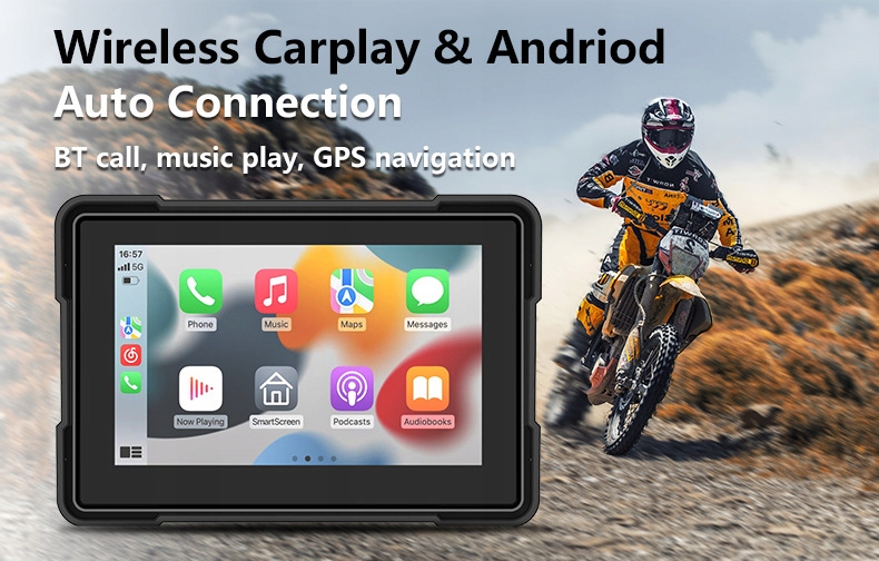 5-дюймовый мотоциклетный Carplay Android AUTO, передняя и задняя двойная камера
