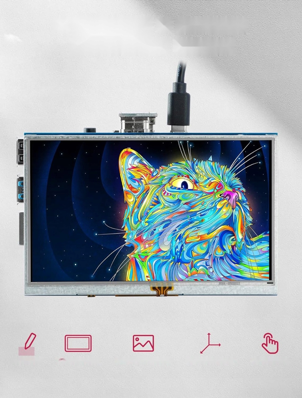 ✅ 2. Простота установки и использования благодаря сенсорной функции: сразу готов к использованию. Пока дисплей подключен к Raspberry Pi через интерфейс GPIO, он может одновременно питаться и передавать данные.