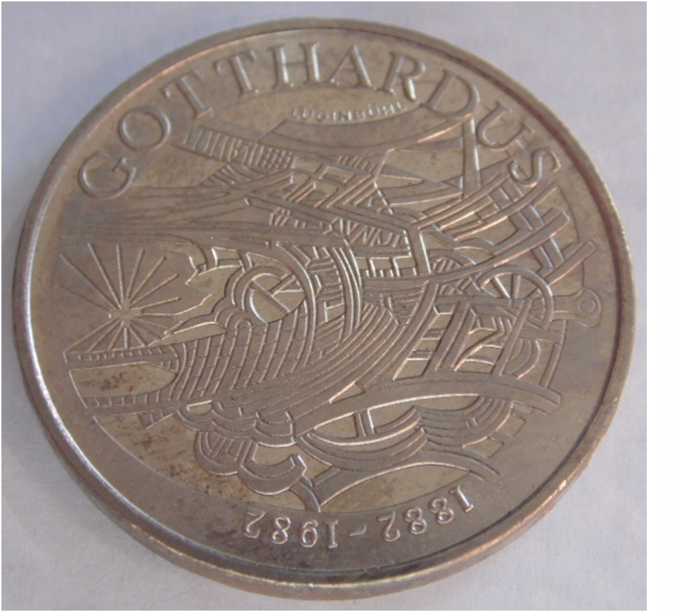 5 ФРАНКОВ 1982 ШВЕЙЦАРИЯ Открытие железнодорожной линии Готтардбан **K64**