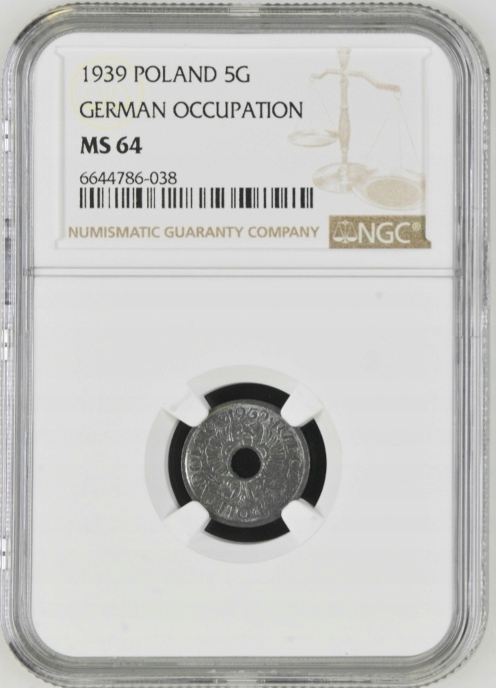 5 groszy 1939 GG NGC MS64 Trzeci Max Piękne