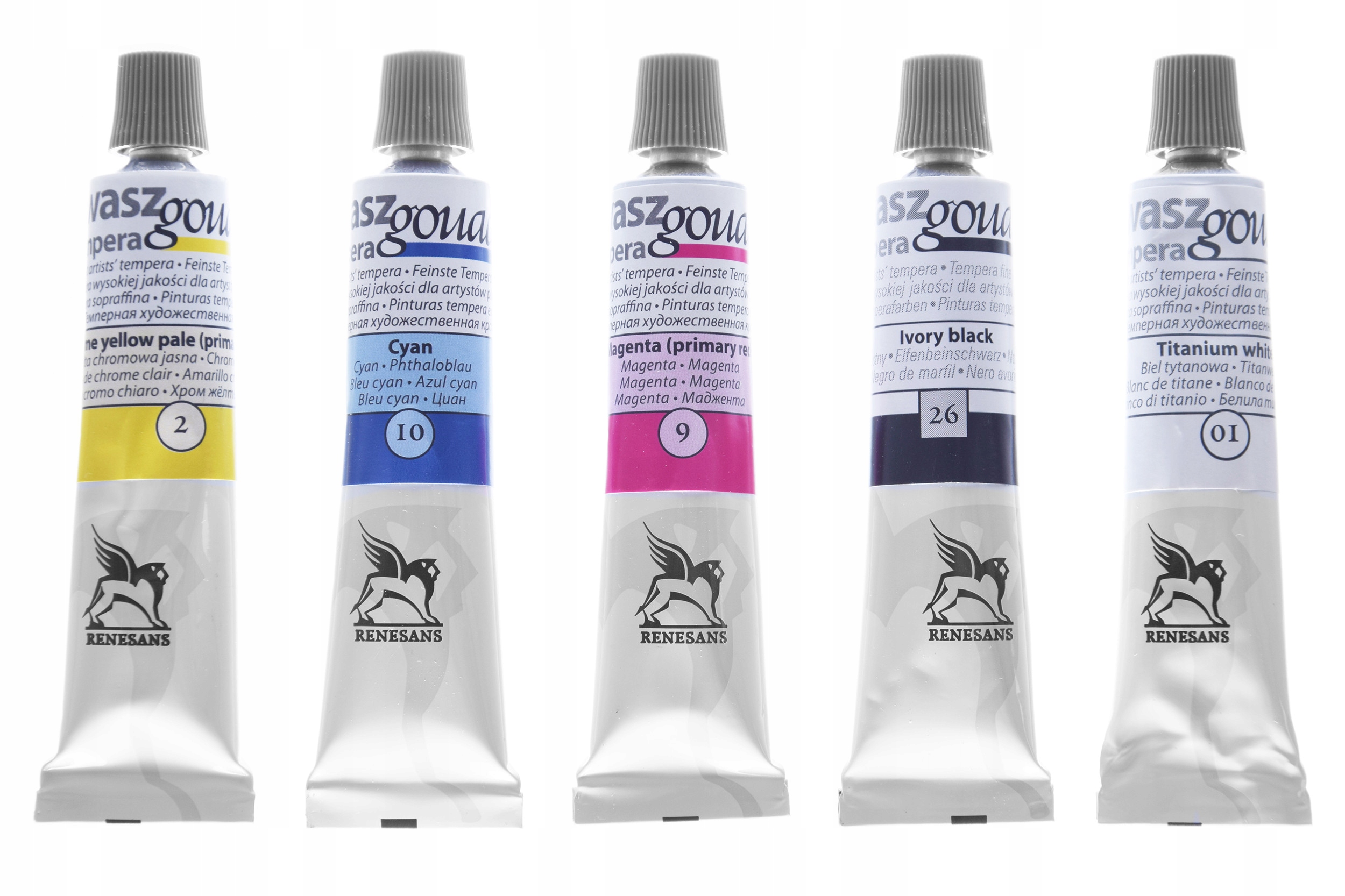 Набор из 5 красок от гуашь в трубках для пластических художников. Ренессанс прост в использовании, покрывает плотные краски, которые после сушки создают гибкое, но все еще водное покрытие.