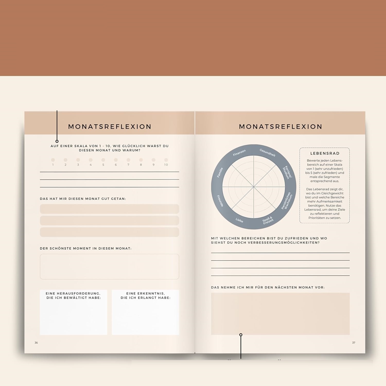 Помимо ежедневных утренних и вечерних записей, журнал также содержит аффирмации, ежемесячные размышления и короткие развивающие упражнения, которые стимулируют действия и поддерживают личностное развитие.