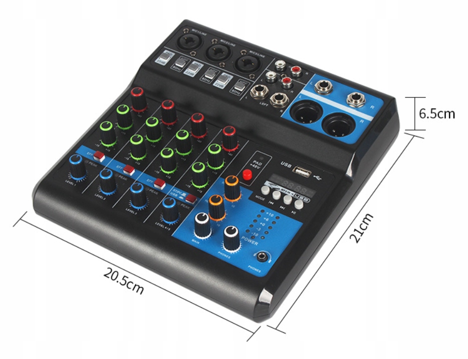 Стерео вход и вывод ..: Этот миксер имеет различные интерфейсы, такие как: B. Входы и выходы из стереорезоля, и все входы микрофона являются шумовыми входами, благодаря которого они получают более подробный многослойный звук. Он имеет встроенный модуль Bluetooth, который можно использовать без кабеля звукового соединения. Он также может быть связан с различными аудиоустройствами, усилителями, CD -игроками, компьютерами, наушниками, музыкальными инструментами и т. Д., Благодаря тому, что у вас есть впечатление, что вы находитесь в профессиональной студии звукозаписи.