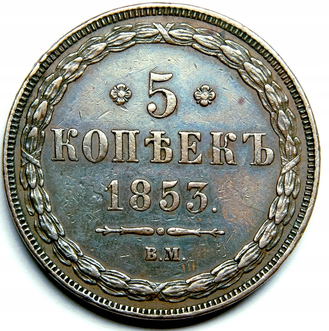 5 kopiejek 1853 B.M. Warszawa - RZADKOŚĆ - bardzo ładne Bitkin R1 40007 szt